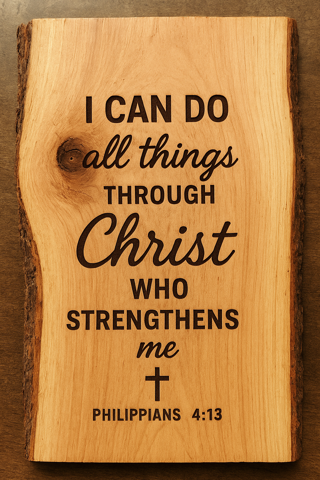 Country Church with Flowers Laser Engraving on Live Edge Wood – Rustic Christian Wall Art
